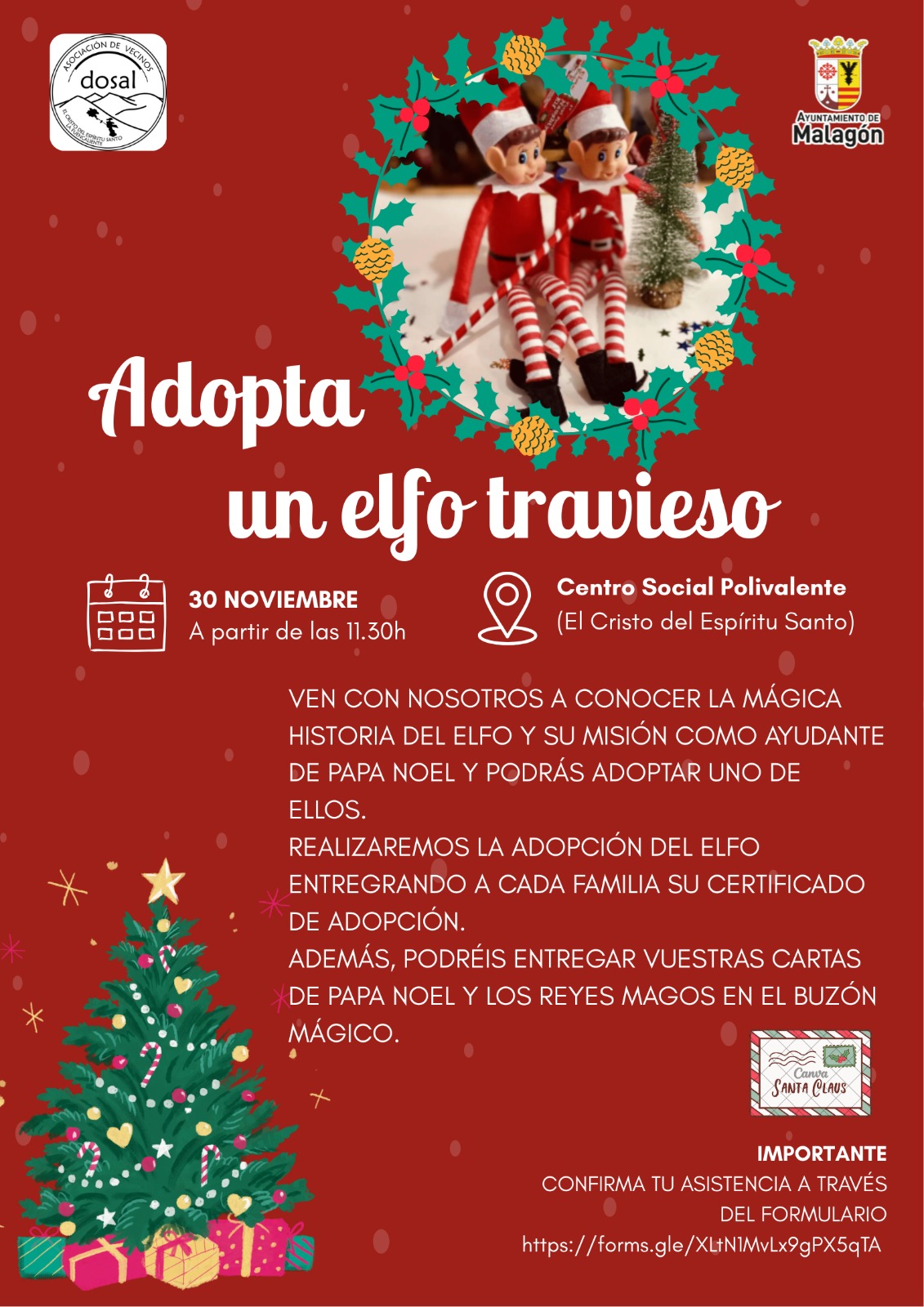 El 30 de noviembre, a partir de las 11:30, te esperamos en el Centro cultural del Cristo del Espíritu Santo para descubrir la historia de los elfos ayudantes de Papá Noel… ¡y adoptar uno!